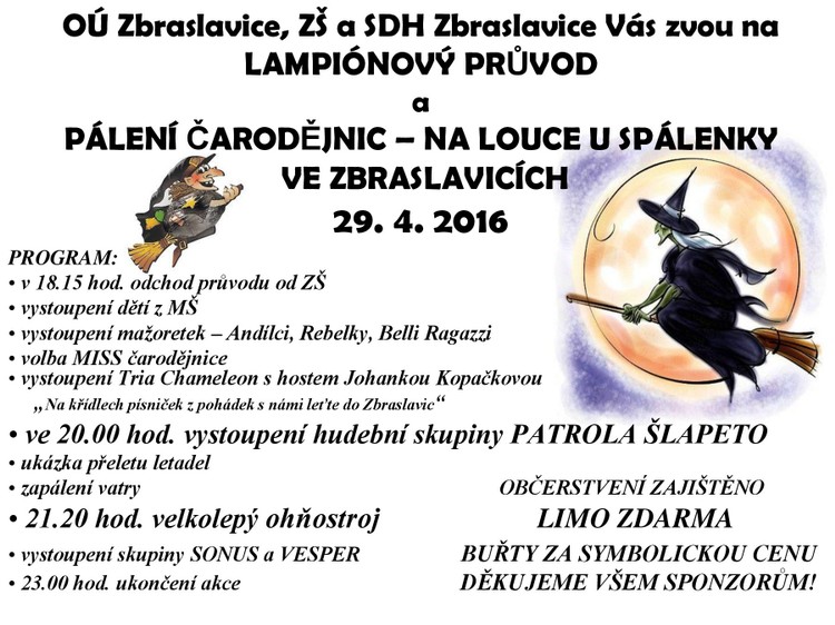 Pozvánka na pálení Čarodejnic ve Zbraslavicích