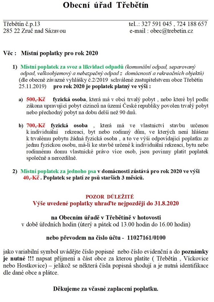 Příjemné prožití svátků vánočních a vše nejlepší do nového roku 2020 Vám přejí zastupitelé obce Třebětín